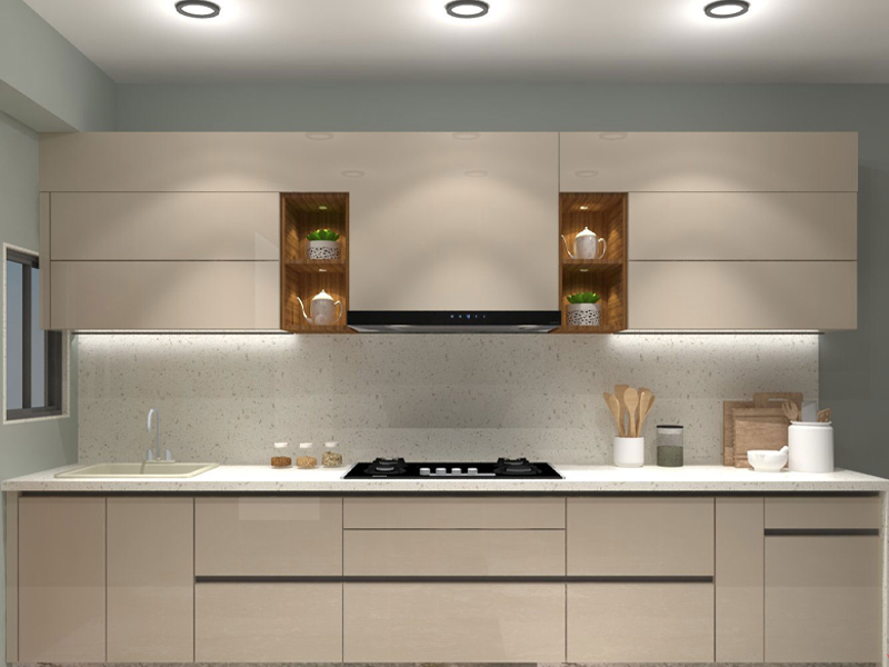 The straight kitchen layout is one of the most basic and functional kitchen layouts. The one-wall kitchen, as it is commonly known, is an appropriate concept for apartments with limited space and offices. The kitchen triangle, when appropriately placed along a single wall, saves both space and money. The layout is linear and clean, with all kitchen necessities such as the stove, sink, and Appliances lined up one after the other. It reduces the need for you to move around a lot while cooking meals.